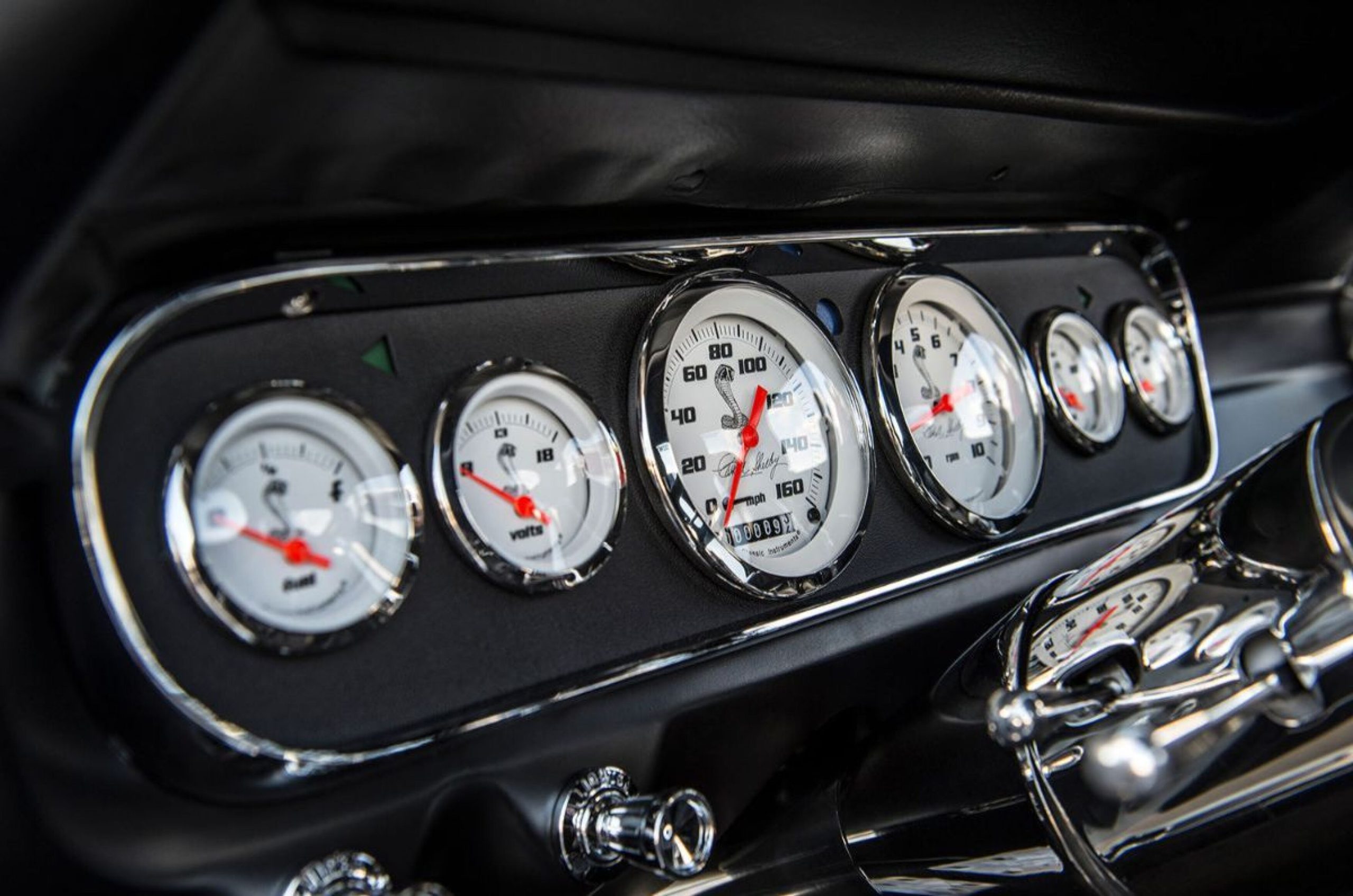 Fabricado íntegramente en el taller de 31,000 pies cuadrados de Trick Rides en Yukon, Oklahoma, el Shelby GT350TR refleja el enfoque riguroso de Trick Rides en la restauración de muscle cars. Conserva los paneles de acero de la carrocería, mientras que las lunas delantera y trasera empotradas, las luces traseras LED personalizadas de Trick Rides y las manijas, bisagras y retrovisores de Ringbrothers incorporan mejoras más modernas.